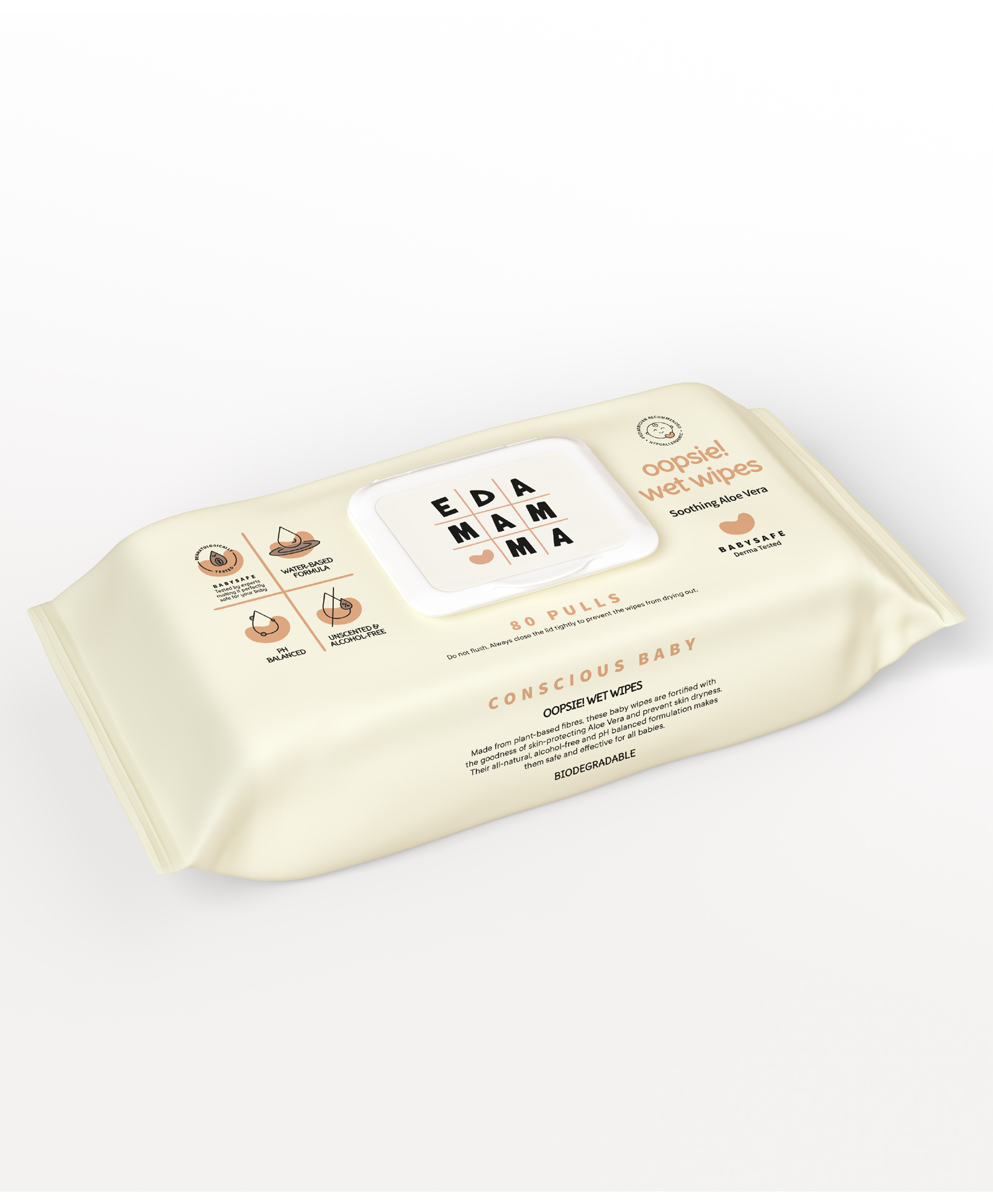 Ed-a-Mamma Oopsie! Wet Wipes Biodegradable Hydrating Water Based Wipes with The Goodness of Aloevera - 80 Pulls