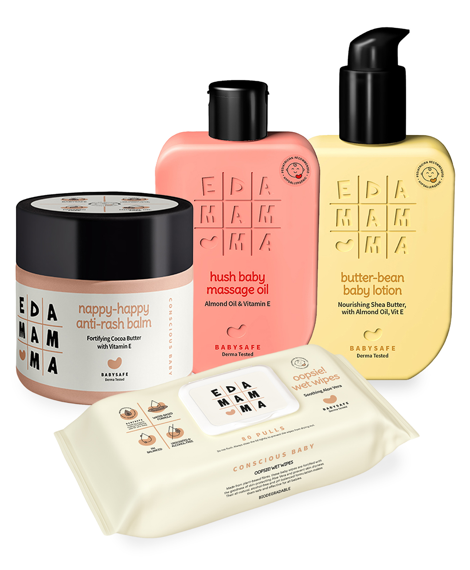 Ed-a-Mamma Hush Massage Oil 200 ml, Wet Wipes 80 Pulls, Baby Lotion 200 ml And Anti-rash Balm 100 g